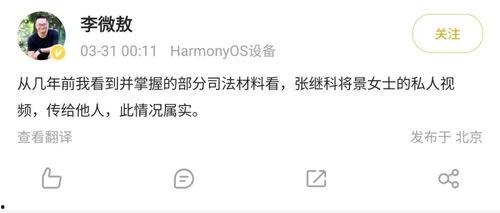 那天,阳光明媚,网友们正悠闲地刷着手机,突然,一条爆炸性消息在网络上迅速传播开来。原来,景甜在微信朋友圈中爆料了一段张继科的视频。视频中,张继科似乎在某个场合与一位神秘女子亲密互动,这让不少网友都惊呆了。